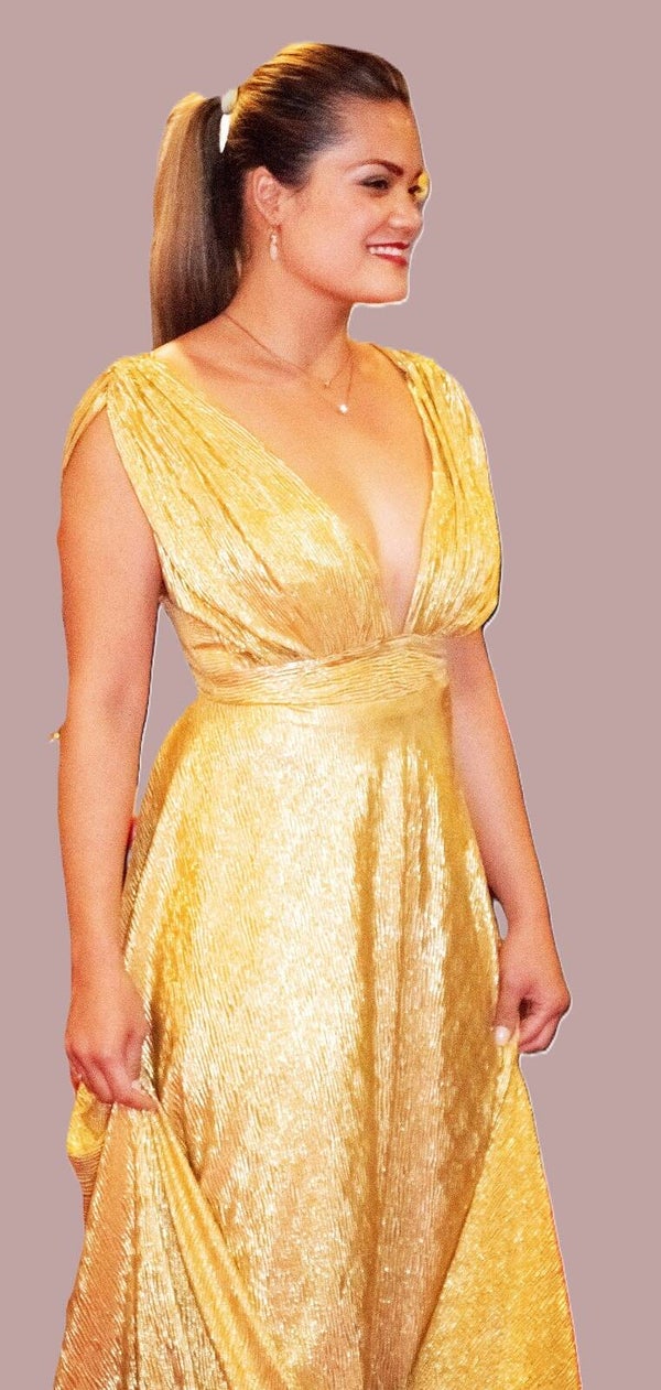 Robe de soirée dorée femme, sur mesure taille 40/42, modèle unique.
